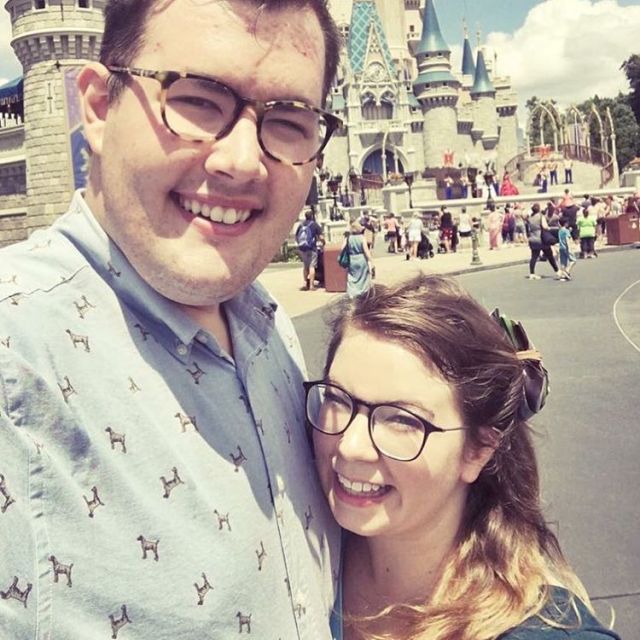 It’s hard to take selfies when you’re half the size of your other half. ❤️❤️❤️ #firstselfie #firstcastlephoto #🎅🏻🎅🏻 (at Disney’s Magic Kingdom)
