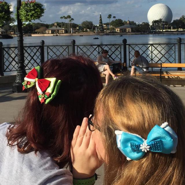 This is such an important photo to me (even if my dad is a terrible photographer!) My sister and I are very close, and every time she comes to visit we disneybound as Anna and Elsa. As a special Christmas gift, I ordered custom crowns for us…only for them to come in wrong, and the seller stopped communicating with me. In a panic I messaged the beautiful Amber from @extrasweetbowtique at the last minute, explaining what went wrong and asking if there as anything she could do. Within minutes she responded, and she saved Christmas with a beautiful set of one of a kind Anna and Elsa holiday bows. She even put them in an adorable gift bag and tucked in some candy canes. I cannot say enough good things about @extrasweetbowtique!! Amber, you are so thoughtful, talented, and wonderful to work with, and I am so honored to call you a friend. ❤️❤️❤️ (at Epcot – Walt Disney World)