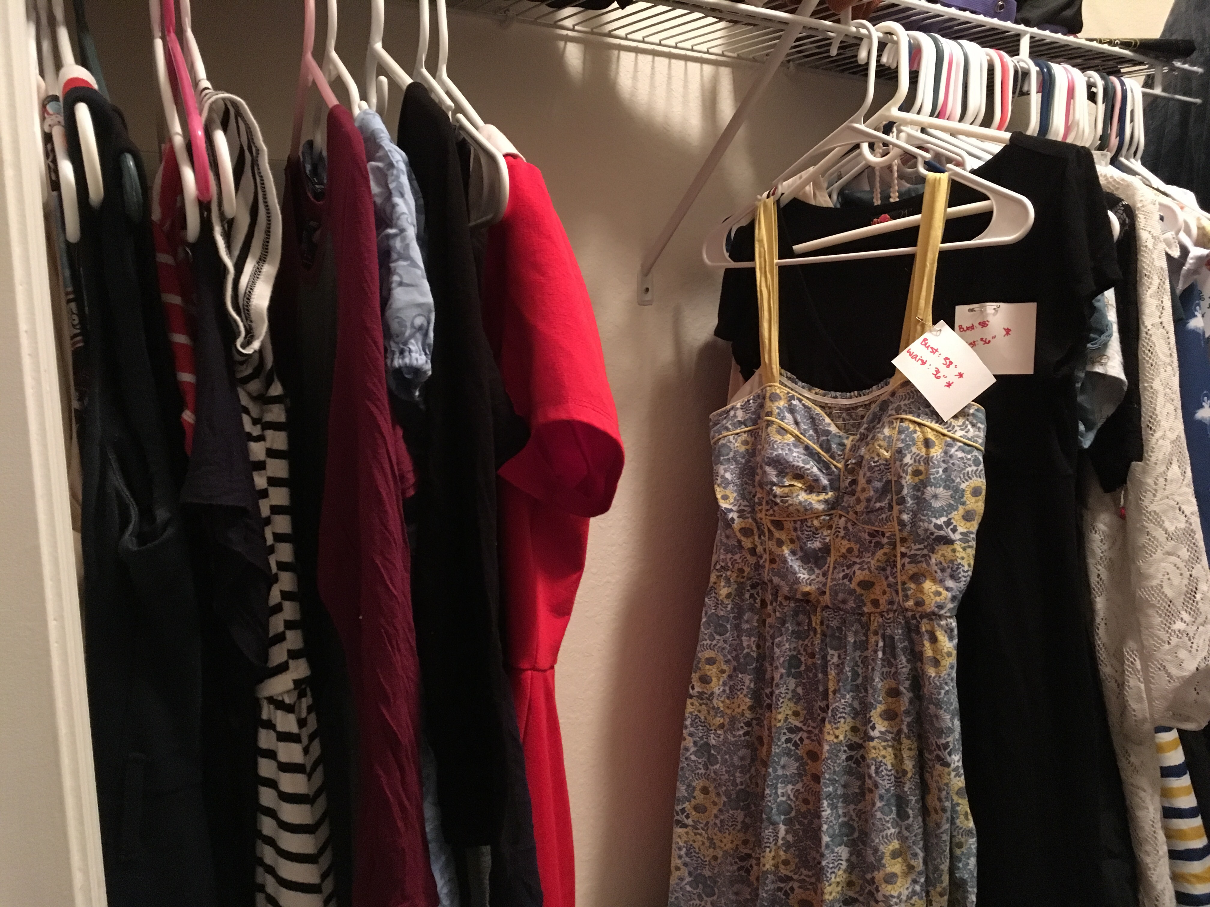 I also gave myself some from motivation. I have tons of cute dresses in my closet that I can’t wear since I gained more weight. I ended up measuring each dress and pinning a note with the bust and waist measurements, and put them in order in my closet from biggest to smallest. My goal is to lose enough weight to wear everything! I even have three Betsey Johnson dresses that I can’t wear- I want to lose enough weight to wear them!