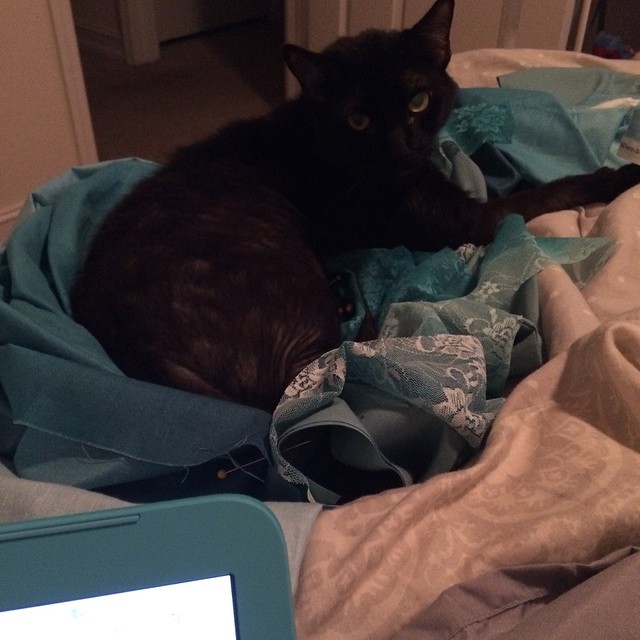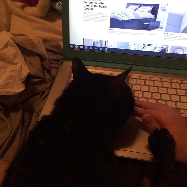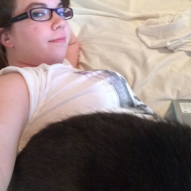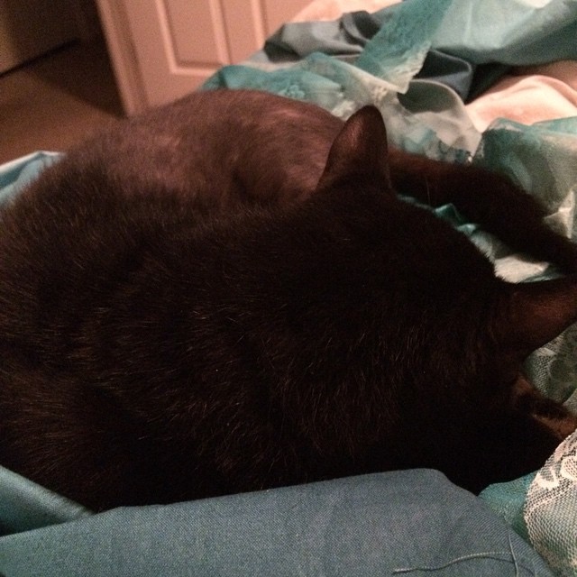Today was a long miserable day filled with screaming guests and fifteen shows and not enough sleep or caffeine. But it’s comforting to come home and flop on my bed and have a sweet kitten baby curl up on my back to cuddle and purr. #hiccupthecat (at The Dollhouse)